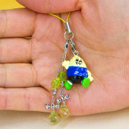 使い勝手の良いストラップ付きのこぶりなぬいぐるみ(座高11㎝弱)。通常のひもタイプと、きらりと輝くボールチェーンタイプの2種類があり、おでかけに付けていくと注目間違いなし。このサイト表紙のとうもろこしをクリックすると、後ろからのぼくが眺められます。